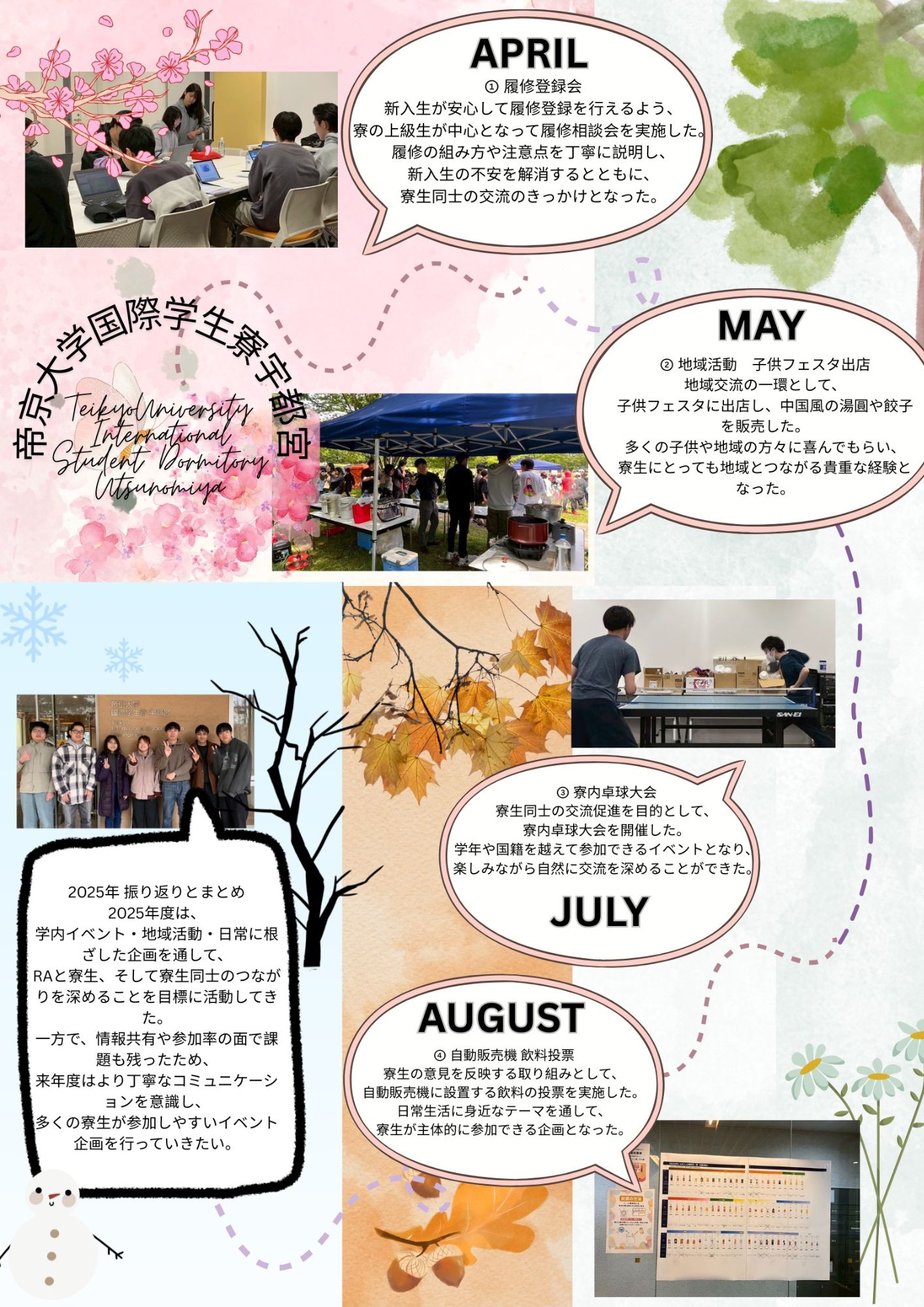 共立メンテナンスが全国の学生寮〈ドーミー〉で展開するResident Assistant(レジデント・アシスタント)プログラム。仲間を支え、より良い“暮らしと学び”をつくるために、日々のコミュニケーションやイベント企画を行い、寮のコミュニティを育みます。多様な経験を通じて自らも学び、成長していく――RAプログラムは、そんな「経験の場」です。